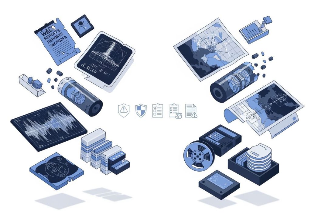 These datasets exist in multiple formats (PDF, LAS, SEGY, XLSX, JPG, PNG, CSV, PPTX, and more), making metadata extraction slow, manual, and error-prone.